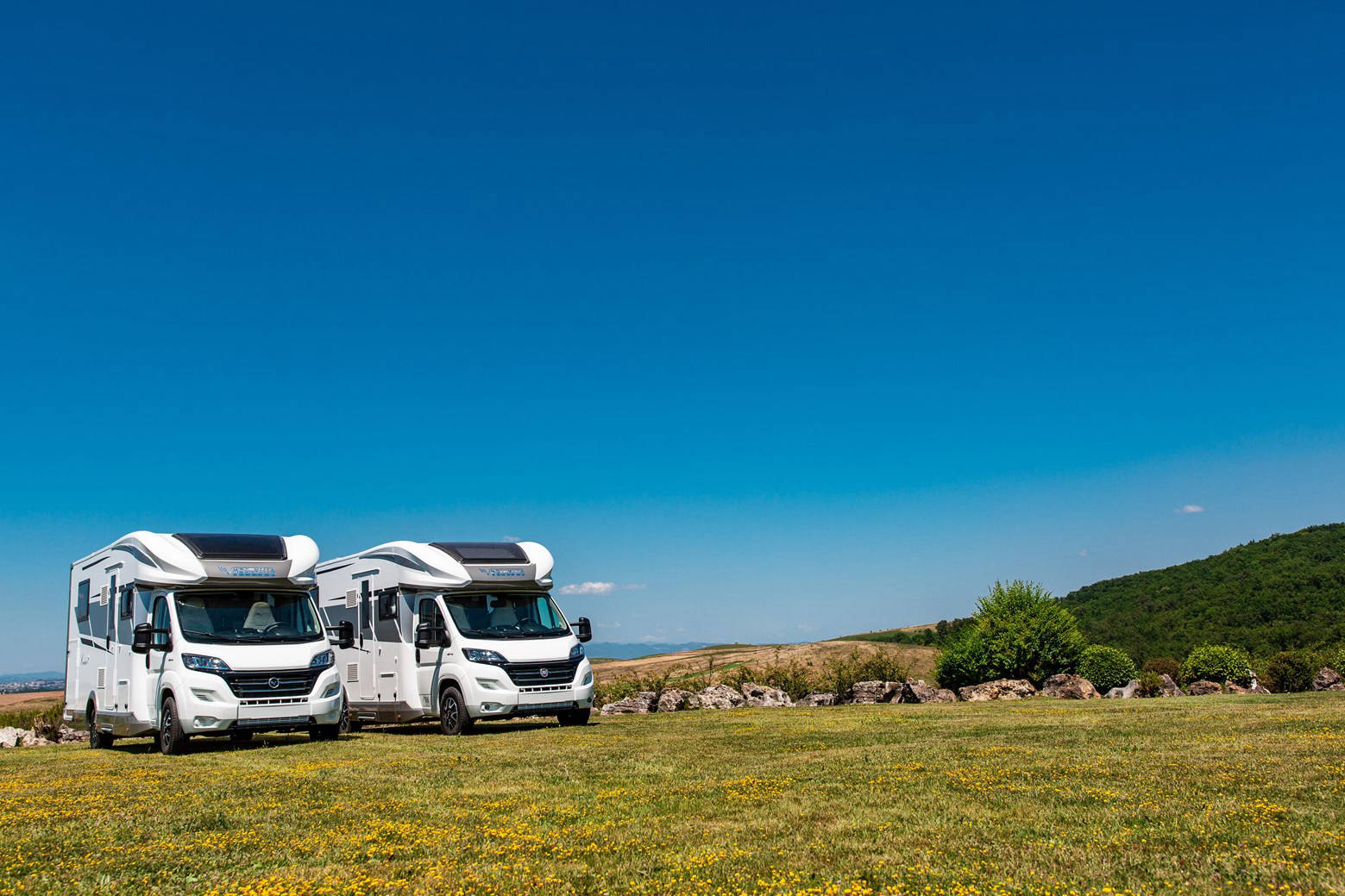 Gestionam o flota de peste 100 de autorulote, van-uri si rulote cu o vechime de cel mult 2 ani. Autorulote de la 2 la 8 persoane pe sasiu de Ford, Fiat, Citroen si Peugeot.